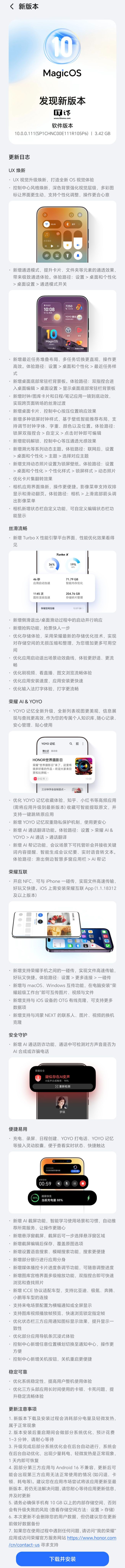 据用户反馈,目前荣耀MagicOS10第三批用户内测版也已开启推送,IT之家附完整更新内容如下: